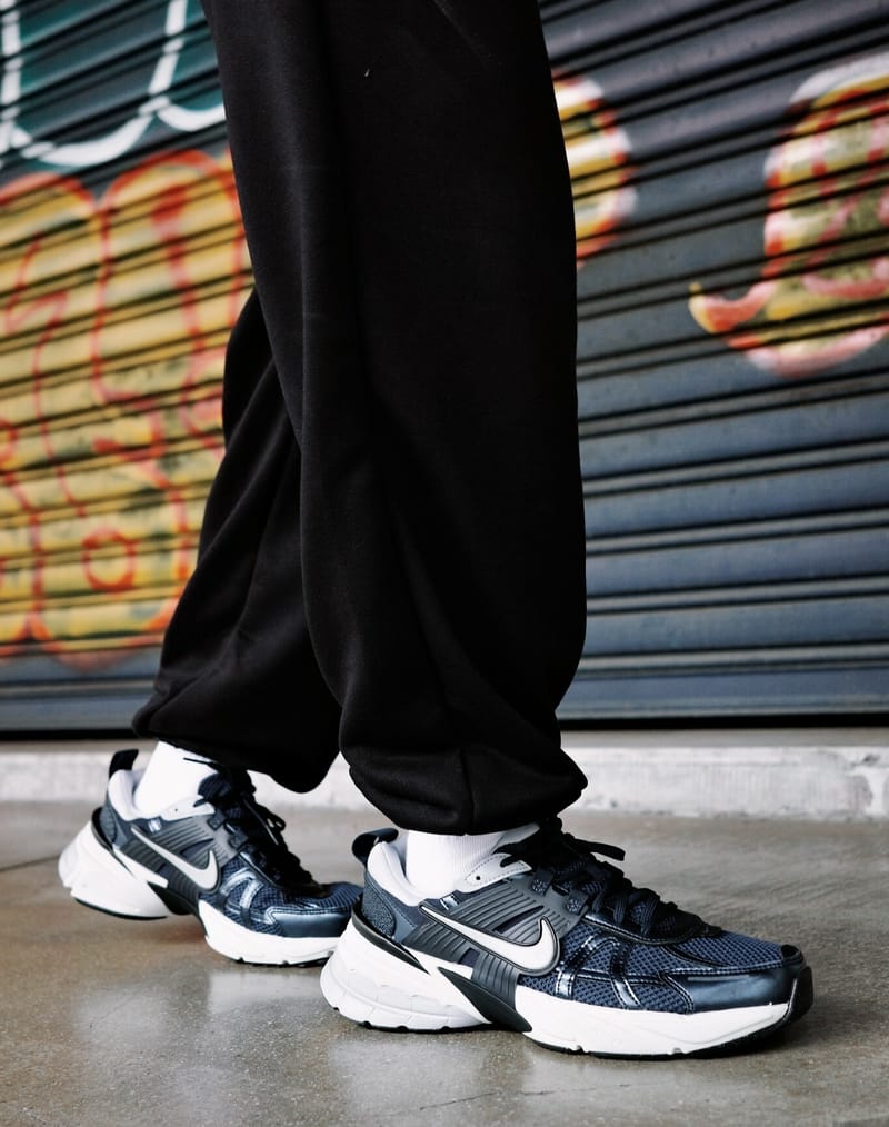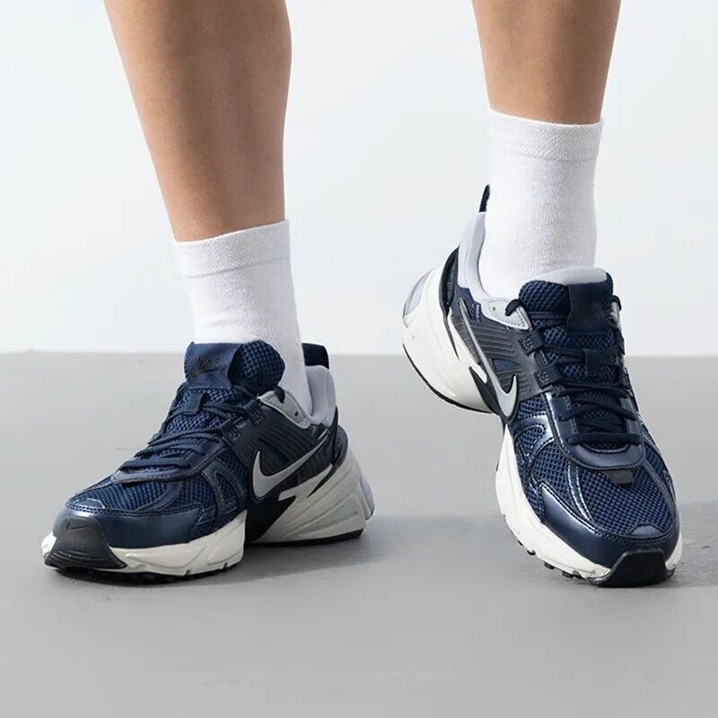 Harkening back to early noughties running shoes, the Nike V2K Run “Obsidian Thunder Blue” presents a retro design with a modern-day colour scheme. The streamlined trainer offers a fashion-forward aesthetic whilst conserving its futuristic Y2K vibe. This Nike V2K Run iteration features a dark blue mesh upper with glossy metallic reinforcements and a midfoot plastic cage. The grey Swoosh on the sidewalls emits reflective properties to stand out during nighttime, complementing the embroidered logo on the tongue. The dual-density foam midsole has a predominantly sail white tone for a vintage look, propped up by a segmented waffle sole.